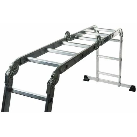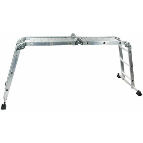 Informations produit: Produit: Échelle en aluminium Caractéristiques: Échelle transformable en 7 différentes positions Poids: 16,3kg Echelle aux normes EN 131 Échelle livrée avec ses deux plateaux pour utilisation en mode échafaudage Échelle 12 barreaux Charge maxi: 150 kg Garantie 1 an Marque: Werkapro Dimensions: en mode échafaudage: Hauteur 91,9 x Longueur 226,5 cm en mode échelle simple: Hauteur 346 cm x Largeur 69 cm en mode échelle 2 plans: Hauteur 178 cm x 116 cm d’écartement échelle pliée: 69 x 26 x 93 cm dimensions plateau A: 85,6 x 29 x 1,6 cm dimensions plateau B: 57,6 x 29 x 1,6 cm Conseil entretien: Il est nécessaire de graisser les 6 rotules avant la première utilisation de l’échelle et environ toutes les 100 utilisations. Conseil utilisation: Pour plier et déplier l’échelle, relevez le crochet de chaque rotule mobile avant de la débloquer