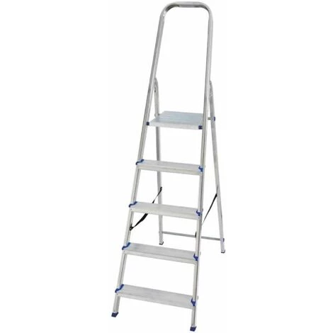 Escabeau 5 marches d’une grande stabilité, en aluminium très léger. Ne prend pas de place une fois plié.