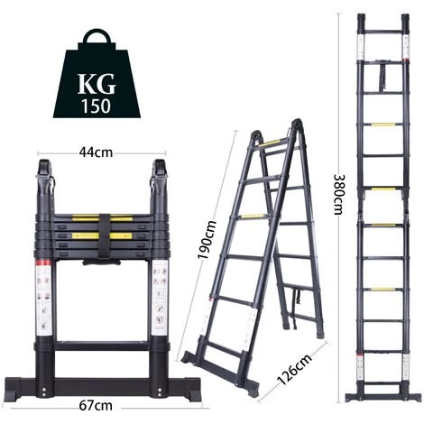 - Échelle pliable en aluminium de 3,8 m : une fois pliée, elle est compacte et utile, très facile à transporter et à ranger. Peut être transporté dans la plupart des véhicules