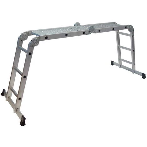 Découvrez l’échelle multi-positions avec une plate-forme et sa polyvalence pour vous accompagner dans tous vos travaux. Ses articulations lui permettent de prendre 4 positions différentes : échelle simple, écarteur de mur, escabeau et plate-forme. Elle dispose d’un stabilisateur afin de sécuriser le produit. La plate-forme en acier est en deux parties pour une longueur totale d’1m44