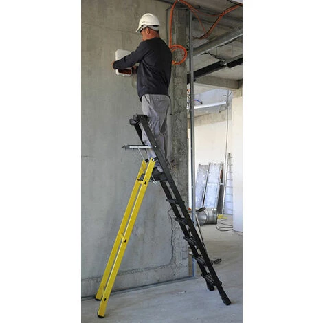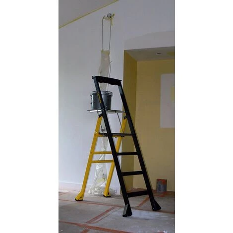 – Escabeau testé à 400 kg au niveau de la plateforme, sur un sol en béton et avec les 4 pieds en appui.