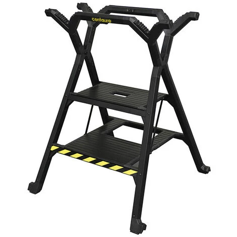 • Marchepied qui peut s’utiliser comme un tréteaux, un établi ou une table de découpe