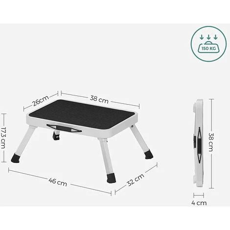 - Rangement compact et transport facile : plié, seulement 4 cm d’épaisseur. Il peut être rangé dans un coin, dans un tiroir ou dans l’espace entre le mur et le meuble. Le marchepied (1,9 kg) est très facile à transporter grâce à sa poignée