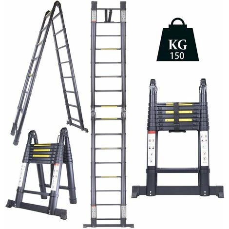 L’échelle télescopique 5 metres est fabriqué en alliage d’aluminium de haute qualité. il est sûr et robuste. La capacité de charge max est de 150 kg.