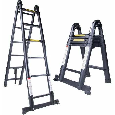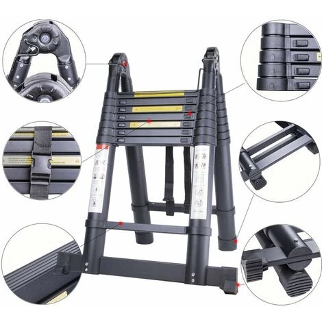 Cisea Échelle Télescopique Polyvalente 5.0 M En Aluminium Pliante, Extenable Échelle à Coulisse Multifonction Noir – 2.5M+2.5M