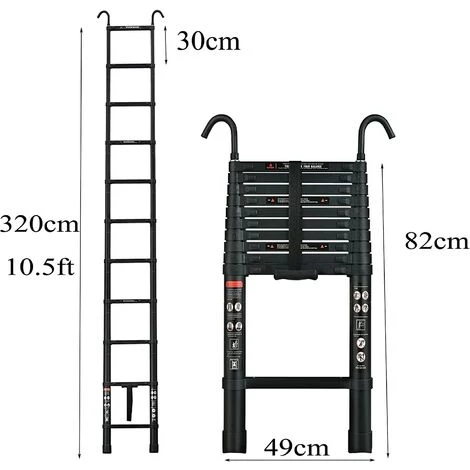 Le crochet de l’échelle peut être accroché à un tuyau d’un diamètre inférieur à 7 cm.