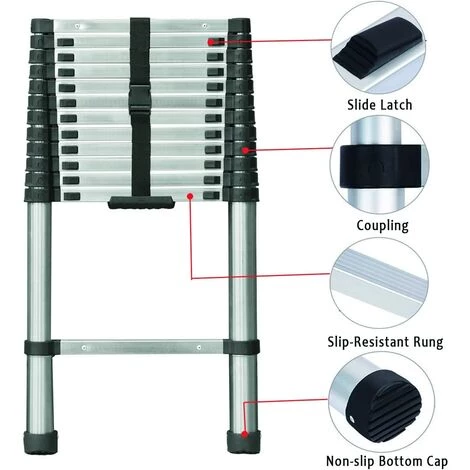 ✅ Sûr et compact — Manchon en caoutchouc noir antidérapant au bas de la marche de l’échelle et plusieurs caoutchoucs entre deux marches adjacentes pour éviter les chocs et les frottements.