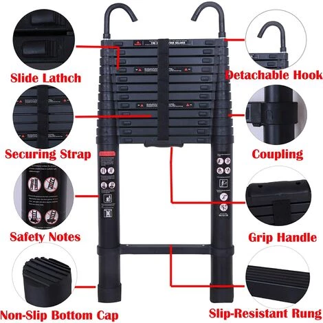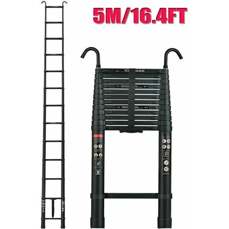 Cette échelle télescopique en aluminium de 16,5 pieds / 5 m est une aide précieuse pour une utilisation domestique à l’intérieur et pour les activités de plein air. Conception extensible, pratique à utiliser et facile à transporter. L’échelle est sûre et compacte, approuvée selon la norme de sécurité européenne EN131