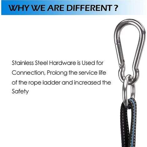 Matériau : fabriqué à partir d’un matériau léger protégé contre les UV, solide et durable, poids maximal de 400 lb, peut être utilisé pendant une longue période. Design mis à jour : design pliable, peut être facilement emporté et stocké, et sa conception antidérapante vous offre une sécurité solide lors de l’utilisation. Facile à utiliser : cette échelle d’escalade est livrée avec 2 crochets, peut être déployée en quelques secondes et n’a besoin d’aucun outil pour l’installer. Il suffit de la plier pour la ranger sans l’utiliser. Large utilisation : non seulement peut être une échelle de bateau, mais peut également être utilisée pour ajouter des marches supplémentaires à n’importe quelle échelle existante. en bon état sec lorsqu’il n’est pas utilisé.