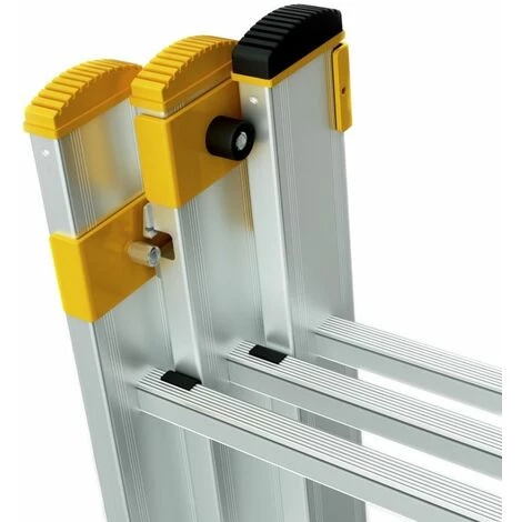 Échelle polyvalente qui s’utilise aussi bien en escabeau qu’en échelle totalement dépliée.