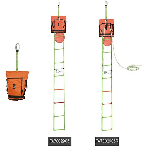 – Sangle en polyester / Barreaux en aluminium / Corde en polyamide / Connecteurs en acier