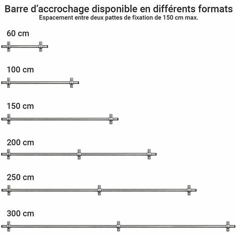 – Barre d’accrochage aluminium anti-glissement, à utliser avec des crochets.