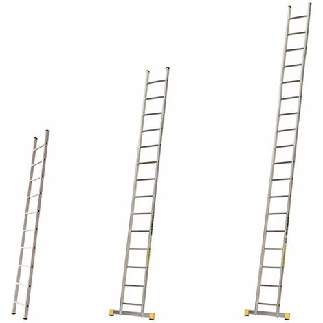 – Les échelles de plus de 3.00m de long sans la barre stabilisatrice sont en dehors du champ de la norme EN 131 du fait de leurs longueurs.
