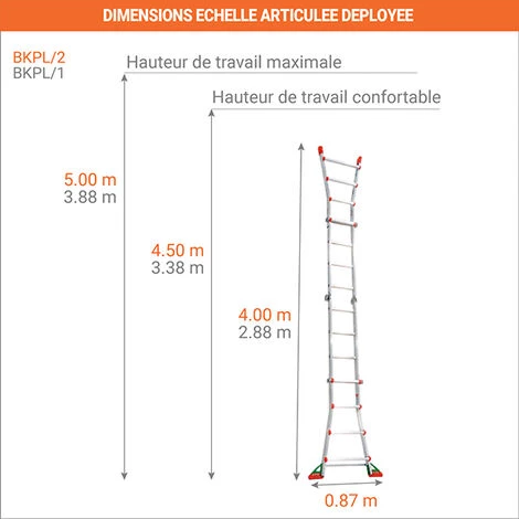 – La hauteur de travail confortable correspond à la longueur de l’échelle plus 50cm maximum.