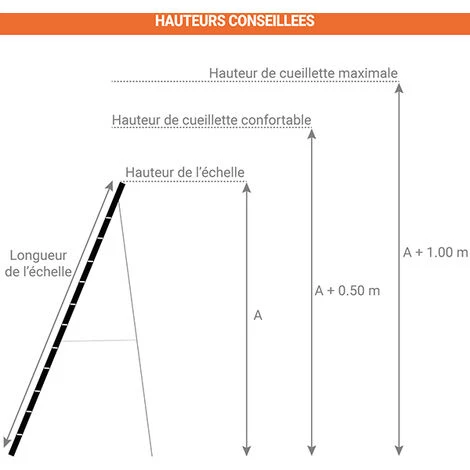 – La hauteur de travail confortable correspond à la longueur de l’échelle plus 50cm maximum.