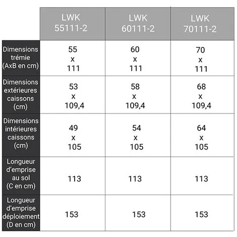 – Echelle livrée pré-montée pour une seule étape de montage : fixer le caisson dans la trémie.