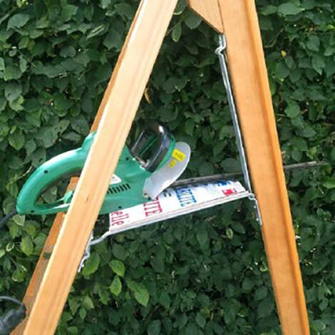 – Le haut de l’échelle en forme de pointe permet de positionner facilement l’échelle entre les branches des arbres.