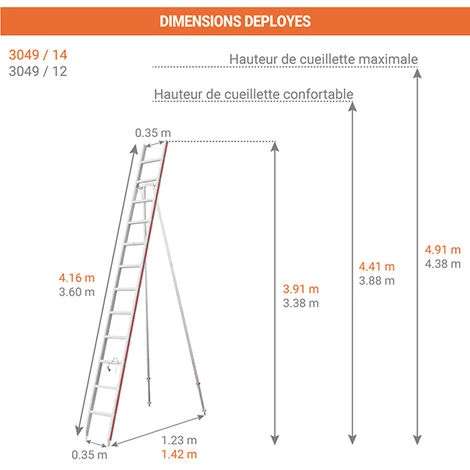 – Echelle réglable en hauteur pour être confortable durant la ramasse des fruits.