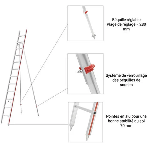 – La hauteur de travail confortable correspond à la longueur de l’échelle plus 50cm maximum.