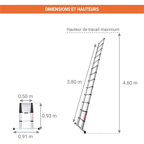 – La hauteur de travail confortable correspond à la longueur de l’échelle.
