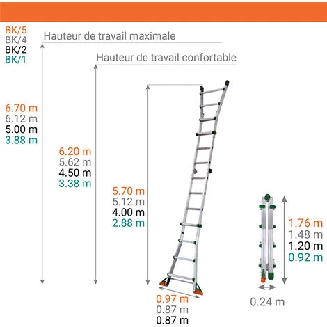 – La hauteur de travail confortable correspond à la longueur de l’échelle plus 50cm maximum.