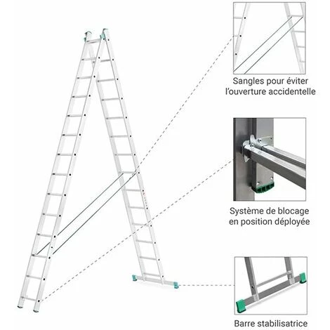 – En échelle double pour atteindre des hauteurs importantes : idéale pour les travaux domestiques, entretien de la maison en intérieur ou extérieure