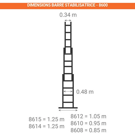 – Hauteur de travail maximale est égale à la longueur d’échelle, en position déployée ou auto-stable, + 1.00m