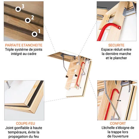 – Echelle coupe feu adaptable en fonction de la hauteur de votre pièce (recoupable).