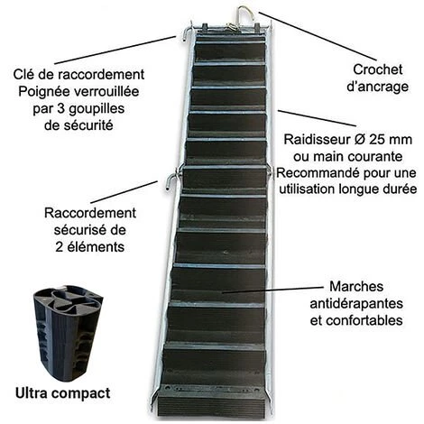 – Raccordement côte à côte possible pour obtenir une échelle de 0.80m de largeur, kit disponible en accessoires.