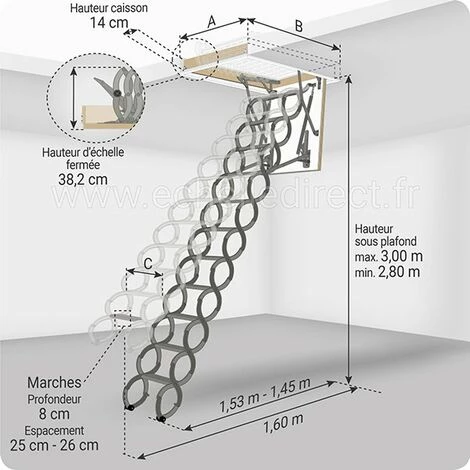 – Echelle escamotable adaptable en fonction de la hauteur de votre pièce.