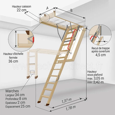 – Echelle escamotable adaptable en fonction de la hauteur de votre pièce (recoupable).