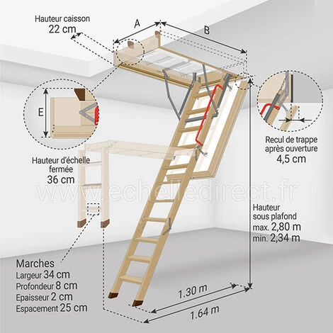 – Echelle escamotable adaptable en fonction de la hauteur de votre pièce (recoupable).