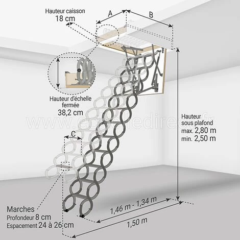 – Echelle escamotable adaptable en fonction de la hauteur de votre pièce.