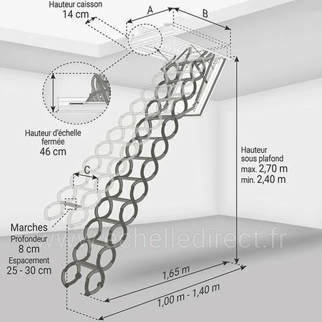 – Echelle escamotable adaptable en fonction de la hauteur de votre pièce.