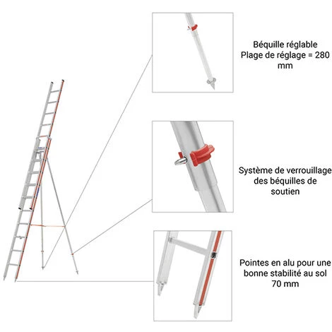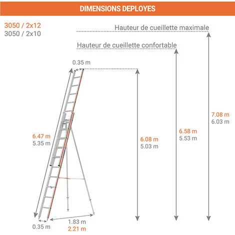 – La hauteur de travail confortable correspond à la longueur de l’échelle plus 50cm maximum.