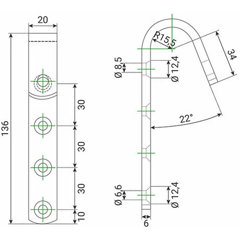 – Pour barre d’accrochage jusqu’à 30mm de diamètre.