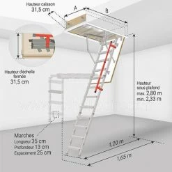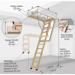 ECHELLE DIRECT – MATISERE Echelle Escamotable Bois – Ouverture Du Plafond De 70 X 111cm – LWK70111-2