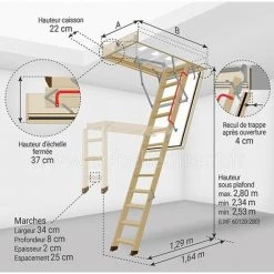 ECHELLE DIRECT – MATISERE Escalier Escamotable – Ouverture Du Plafond De 86 X 130cm – LMF86130-280