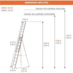 ECHELLE DIRECT – MATISERE Longueur D’échelle Dépliée De 6.47m Et Pliée De 3.67m. – 3050/2X12