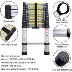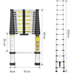 OOBEST 3,8M Échelle Télescopique Aluminium Portable Escabeau Pliable Multifonctions,150 Kg Capacité