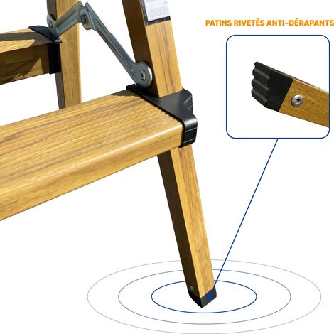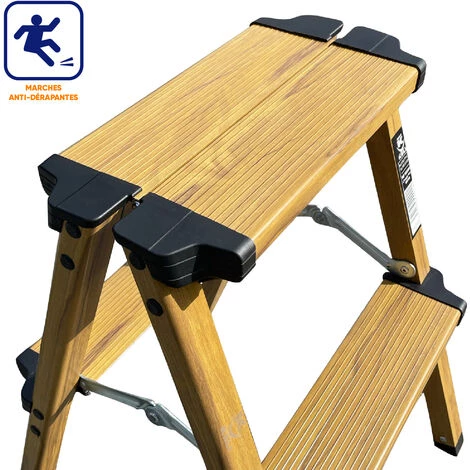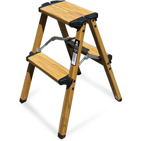 Escabeau Élégance Domestique Keli (2 Marches (hauteur De Travail 1,87)), Marchepied, Fabriqué En Aluminium Finition Bois (chêne)