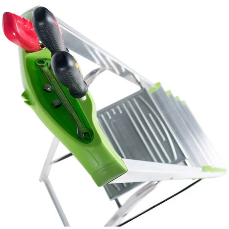 – Pratique avec sa tablette porte-outils avec emplacement pour marteau, lave vitre et crochet porte torchon
