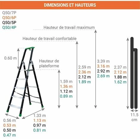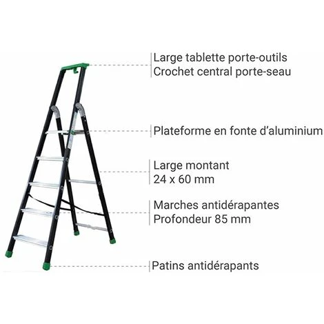 – Pour des travaux de gros oeuvre, escabeau robuste grâce à ses larges montants.