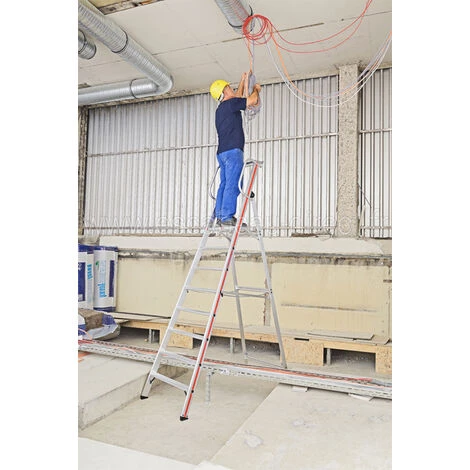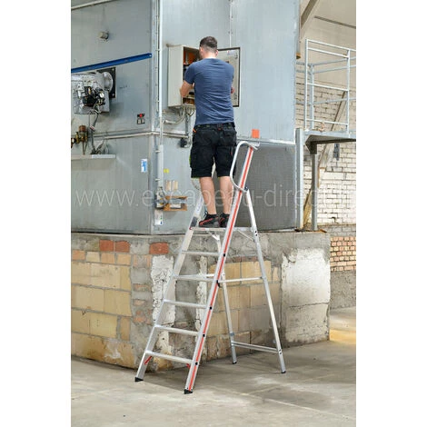 – Une sécurité optimale du travail en hauteur grâce à la grande plateforme et la main-courante qui réduisent le risque d’accident du travail.