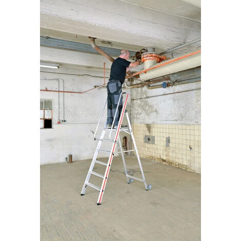 – Une sécurité optimale du travail en hauteur grâce à la grande plateforme et aux 2 mains-courantes qui réduisent le risque d’accident du travail.