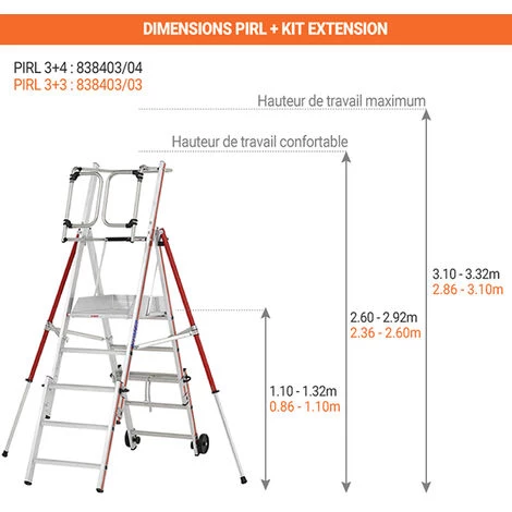 – La hauteur de travail confortable correspond à la hauteur de plateforme + 1.00m