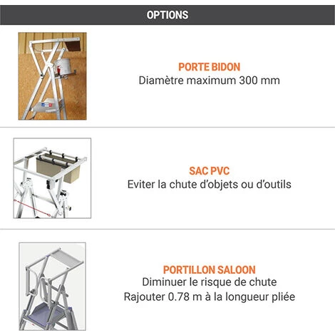 – Plinthes qui empêche de passer le pied en dehors de la plateforme ou la chute d’outil.