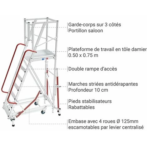– Les parties rouge de l’escabeau sont non salissantes, cela permet de garder des mains et des marchandises propres et intactes.