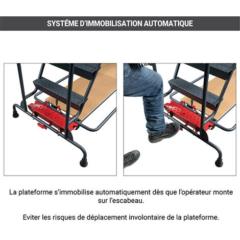 – Système d’immobilisation automatique lors de la montée de l’opérateur sur la plateforme pour une sécurité optimale.