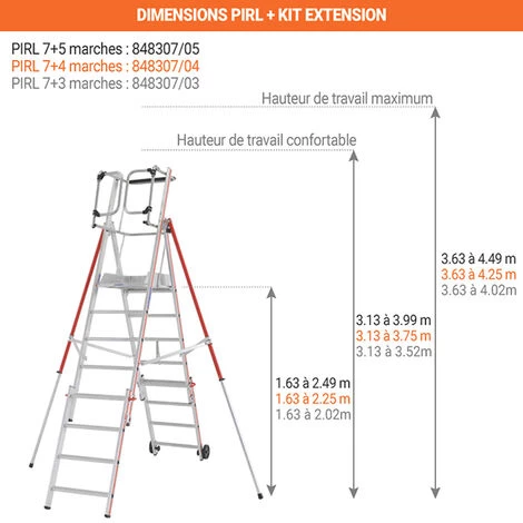 – Pour des travaux ou interventions à grandes hauteurs, jusqu’à 4.49m.